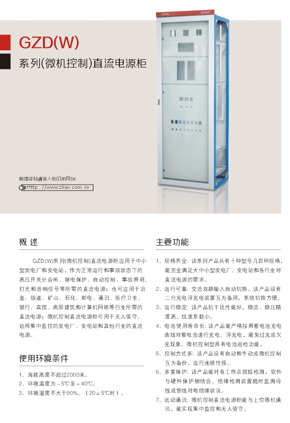 GZD(W)系列(微機(jī)控制)直流電源柜應(yīng)用于中小 型發(fā)電廠和變電站,作為正常運(yùn)行和事故狀態(tài)下的 高壓開(kāi)關(guān)分合閘、繼電保護(hù)、自動(dòng)控制、事故照明、 燈光和音響信號(hào)等所需的直流電源;也可應(yīng)用于冶 金、鐵道、礦山、石化、郵電、通訊、醫(yī)療衛(wèi)生、 銀行、賓館、高層建筑和計(jì)算機(jī)網(wǎng)絡(luò)等行業(yè)所需的 直流電源:微機(jī)控制直流電源柜可用于無(wú)人值守、