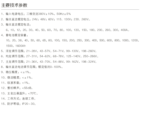 7、遠(yuǎn)動(dòng)通訊:微機(jī)控制直流電源柜能與上位微機(jī)通訊,能實(shí)現(xiàn)集中監(jiān)控和無(wú)人值守。